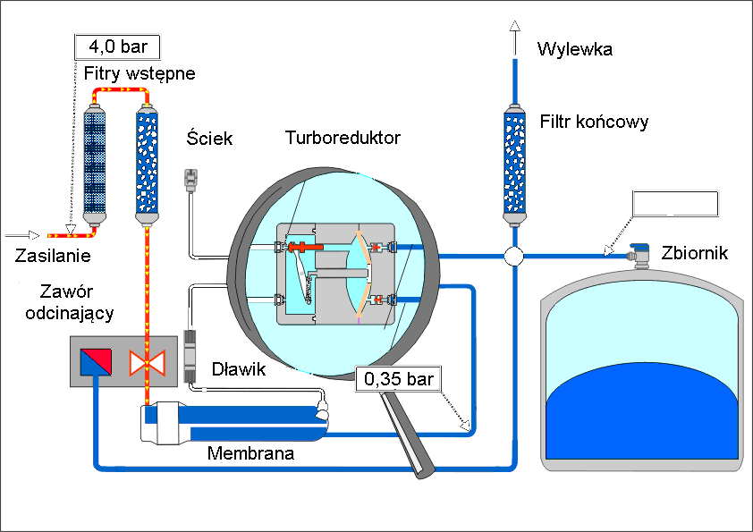 * – zależnie od ciśnienia wody w sieci wodociągowej oraz od zużycia filtrów ochronnych i membrany osmotycznej